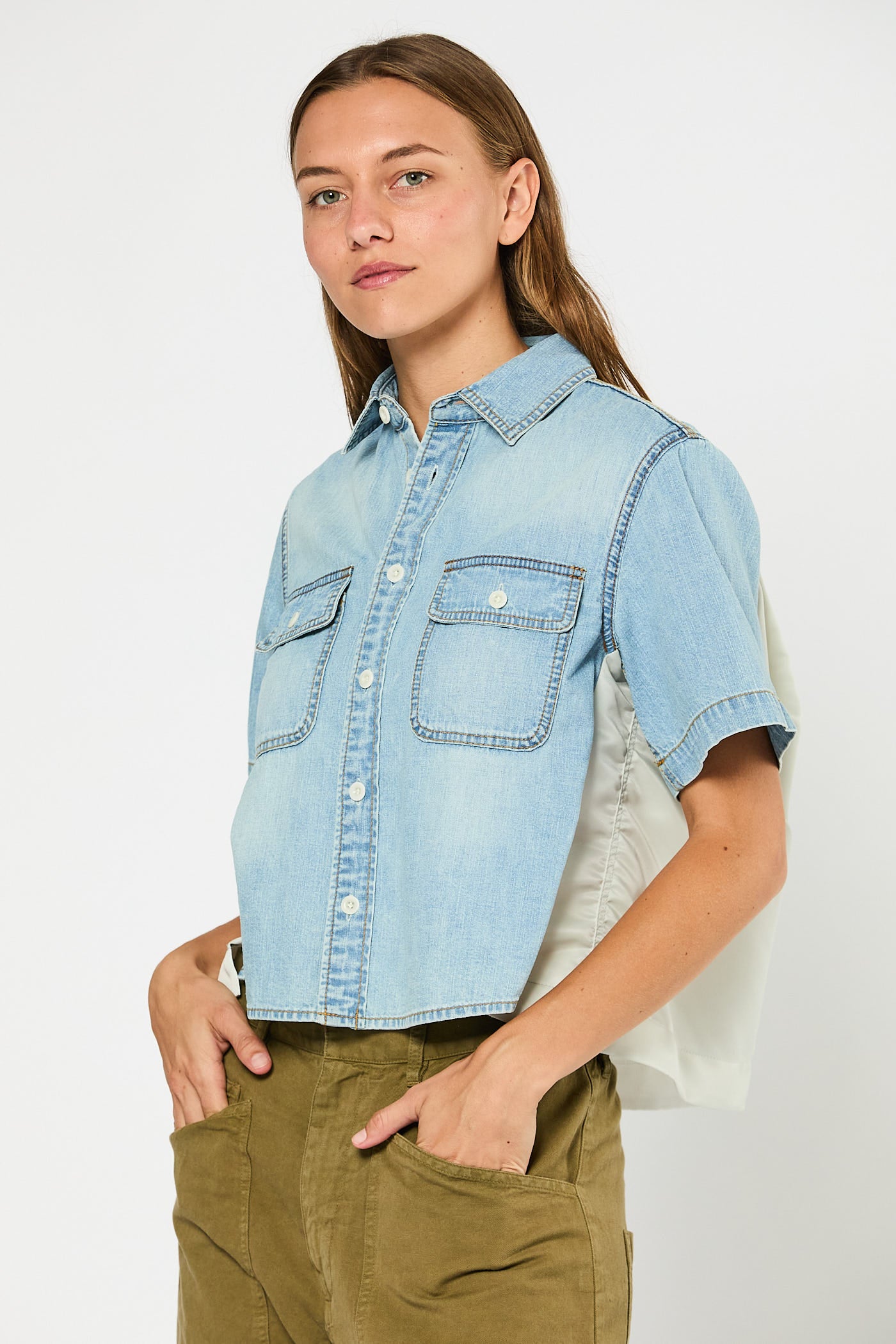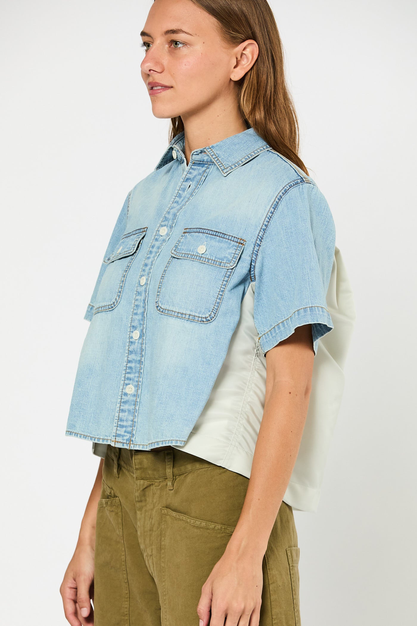 - Short-sleeve denim shirt